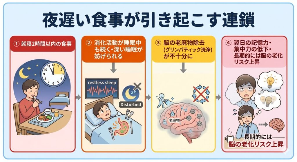 4. 夜遅い食事が睡眠と脳の修復を妨げる