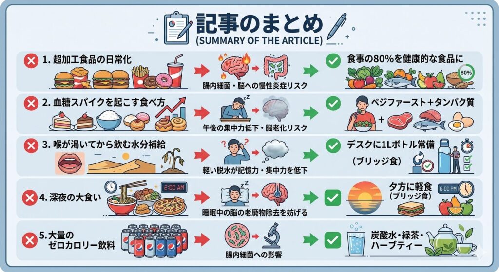 【脳科学が警告】今すぐやめるべき「脳に悪い食習慣」5選と正しい代替策