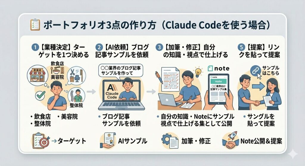 先にポートフォリオを作る 架空の案件でサンプルを3点作成し、NoteやPDFで公開する